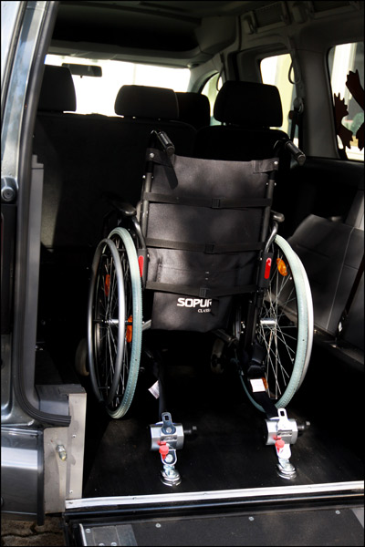 Beim VW Caddy besteht die Möglichkeit , fünf Personen ohne Rollstuhlfahrer zu Transportieren ( mit Rollstuhlfahrer abhängig der Rollstuhlbreite bis zu max. 3 Personen + Rollstuhlfahrer ). Desweitern wird der Tank durch einen Edelstahltank ersetzt.